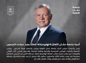 اسرة جامعة عمّان الأهلية تهنئ جلالة الملك بعيد ميلاده الميمون