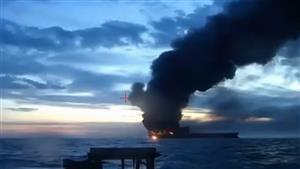 دخان يتصاعد من سفينة شحن مشتعلة في البحر الأسود قبالة الساحل التركي، وسط الصراع الروسي الأوكراني المستمر. 29 تشرين ثاني 2025 (أ ف ب)